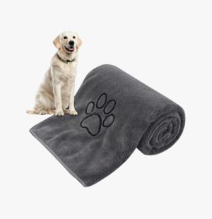 KinHwa Microfibre Dog Towels Large 127cm x 76cm Super Absorbent and Quick Dry Pet Towels for Bath Dogs Cats with Embroidered Paw Print Darkgrey